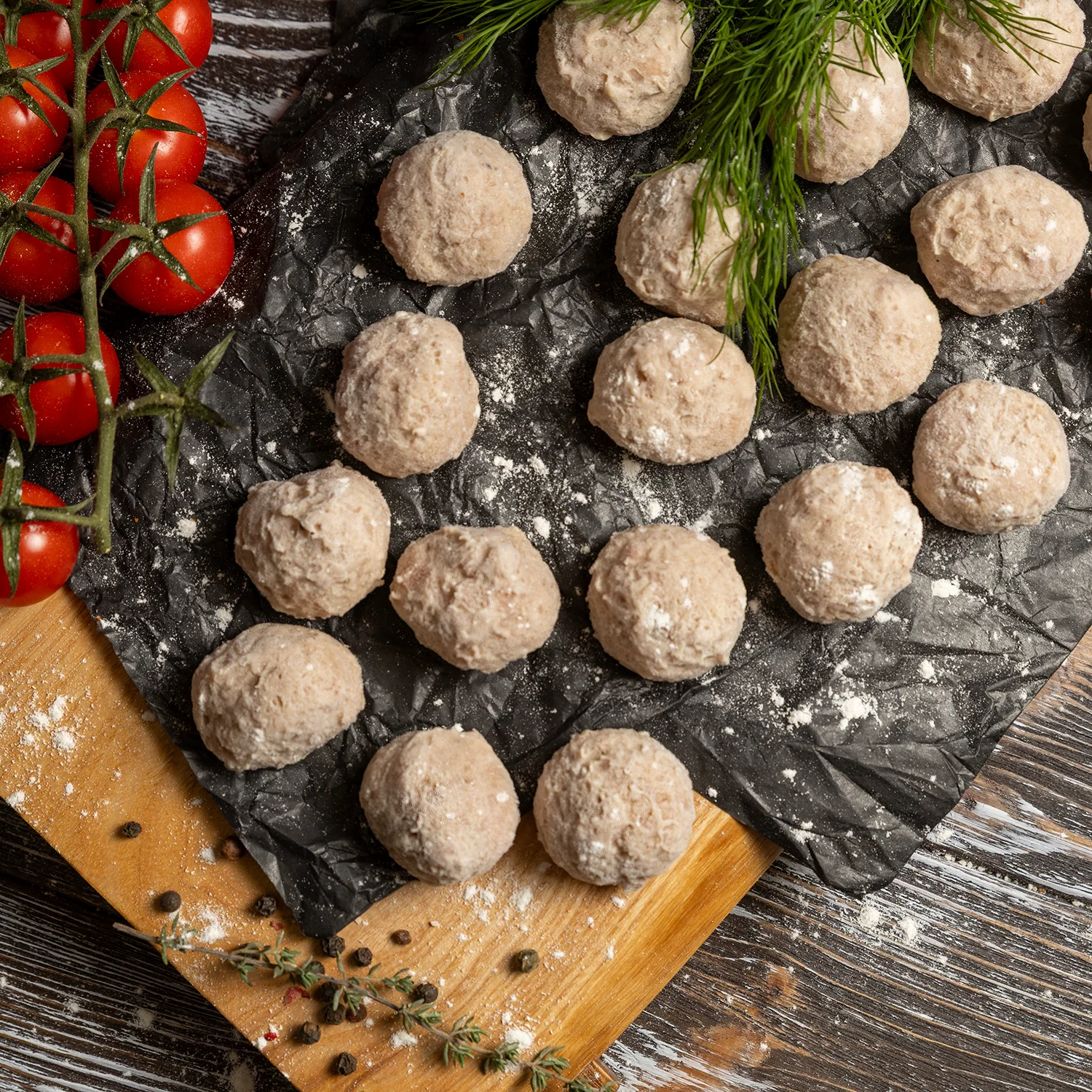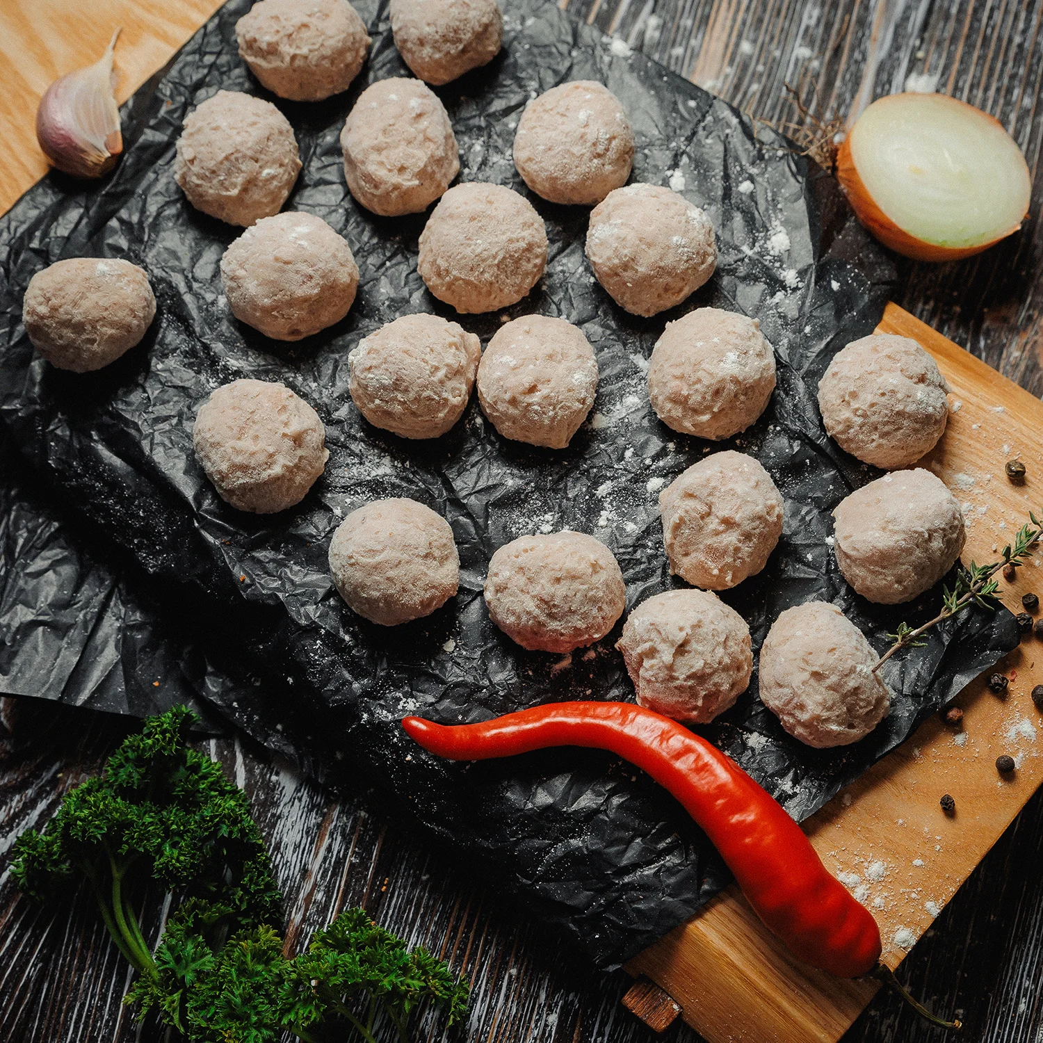 Тефтелі зі свинини сирий продукт (лоток) 0,350 кг